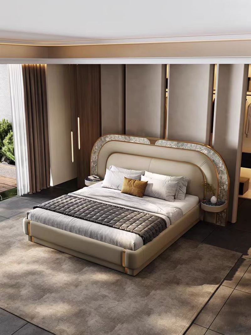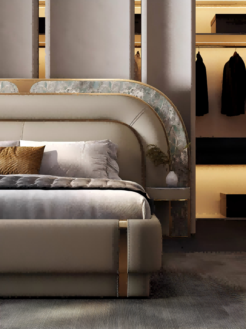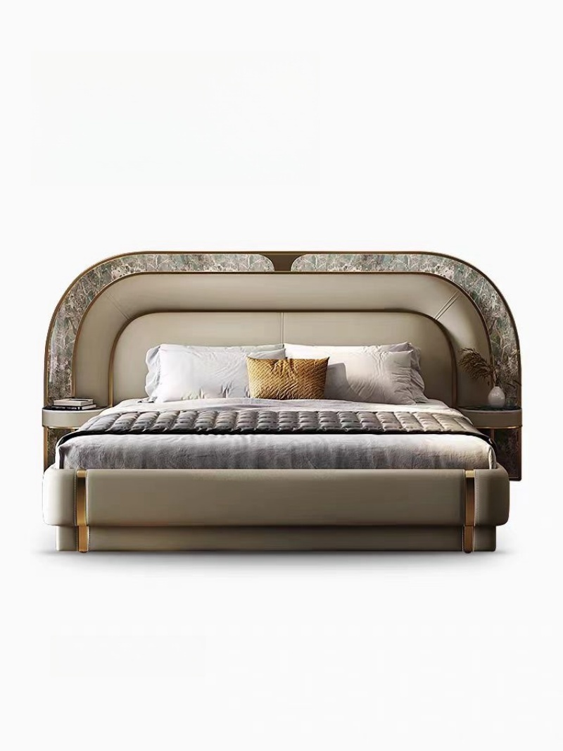 Wybrany włoski naturalny marmur Carrara (3 cm), każdy zagłówek zachowuje unikalny wzór krajobrazu, a miękka okładka w krowi z importowaną górną warstwą stanowi kolizję zimnych i ciepłych materiałów. Marmur przeszedł 6 procesów krystalizacji, aby zapobiec penetracji i zarysowaniu.