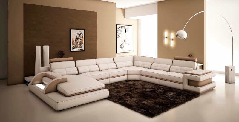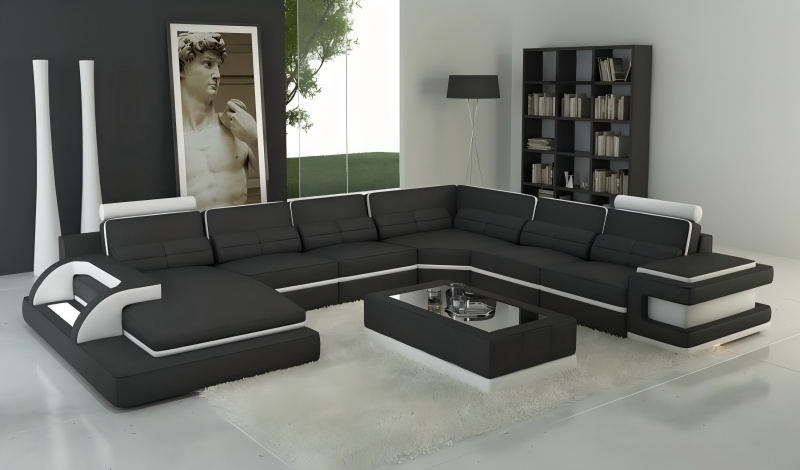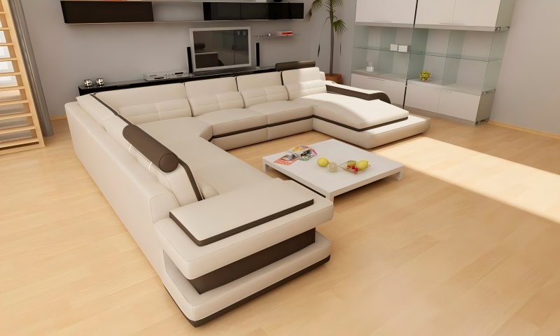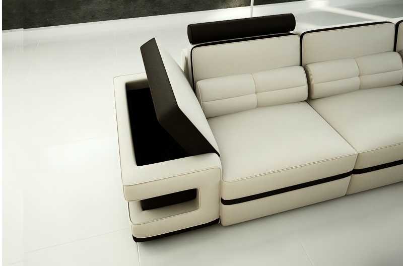 Ta duża skórzana sofa w kształcie litery L jest wykonana z importowanej skóry w najwyższej klasie o delikatnej i miękkiej naturalnej konsystencji. Jest w połączeniu z minimalistycznym bezszwowym designem, wykazującą niską luksusową konsystencję.