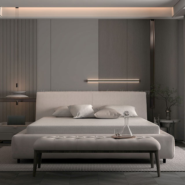 Stylowa miękka konstrukcja pełna powierzchnia głowy, aby łóżko wyglądało bardziej stylowo, gąbka o wysokim odbiciu sprawia, że nowoczesne łóżko tatami wystarczająco miękkie, aby trzymać głowę z dala od twardego uczucia. Miej piękny łuk, wygląd będzie miał inny mody. Projektowanie łuku łóżka, może uniemożliwić dzieciom zabawy bez martwienia się o kolizję.