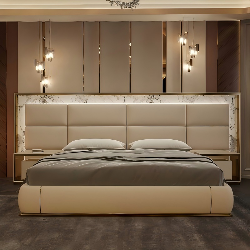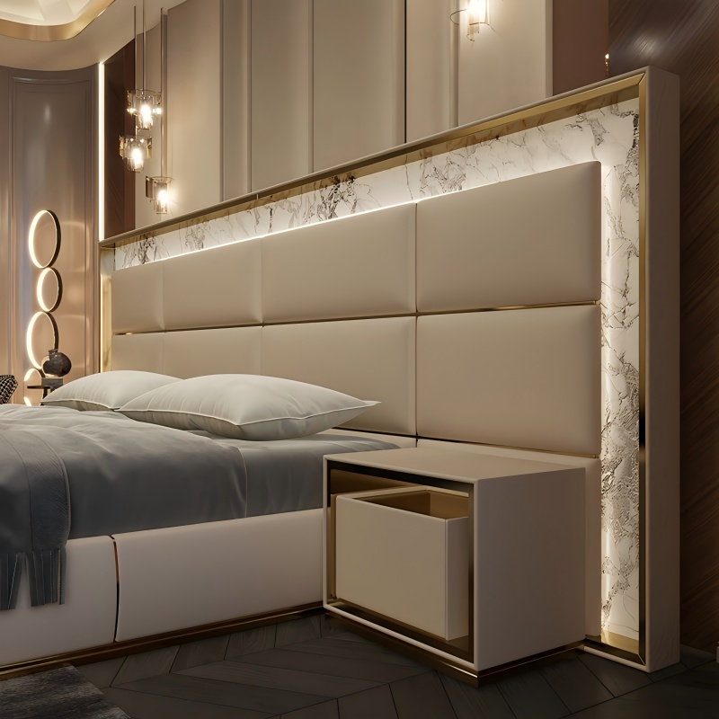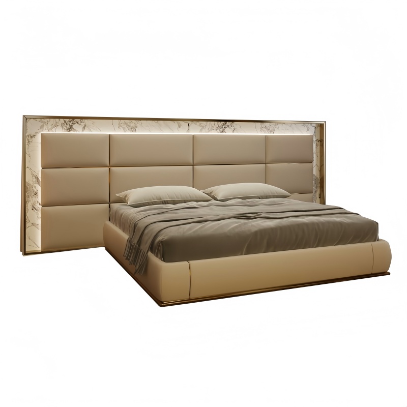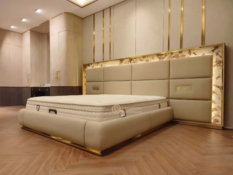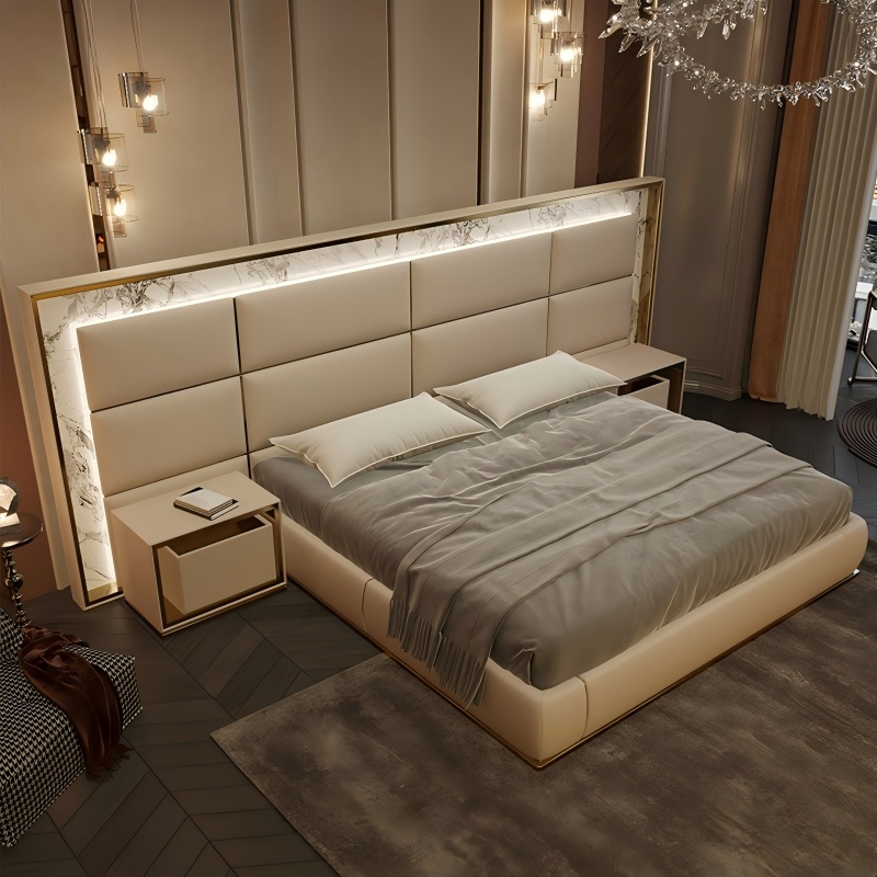 Marmurowy łóżko z wbudowanym ładowaniem bezprzewodowym, symbiozą technologii i luksusem ”
